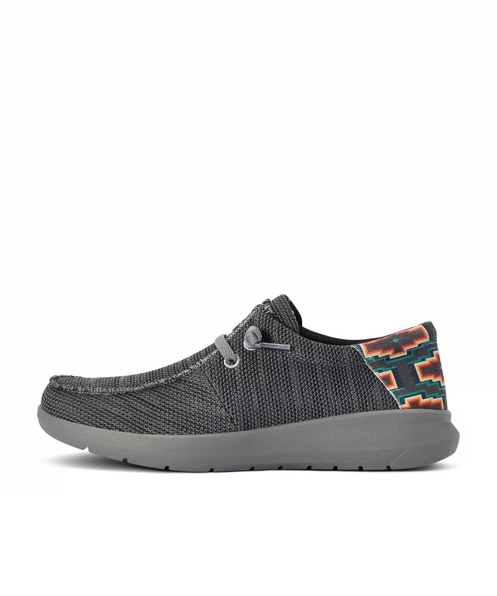 Canvas Textile Upper; Synthetic Lining; Easy Slip On Style With Elastic Laces; Lightweight Flexible FLX Foam Outsole; Color: Heather Charcoal With Orange, Turquoise, Cream And Heather Charcoal Aztec Heel Accent; Style #10040437