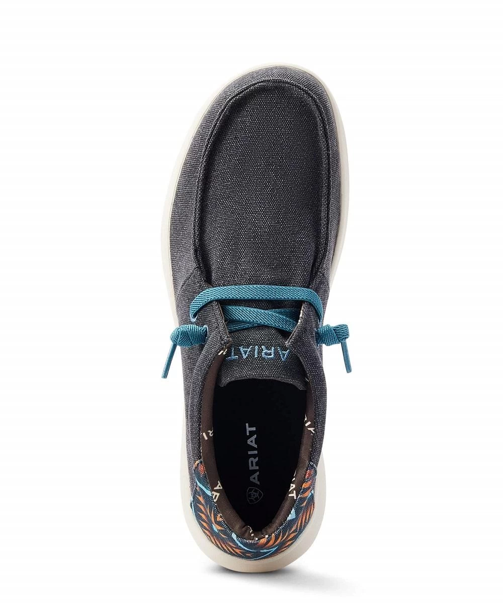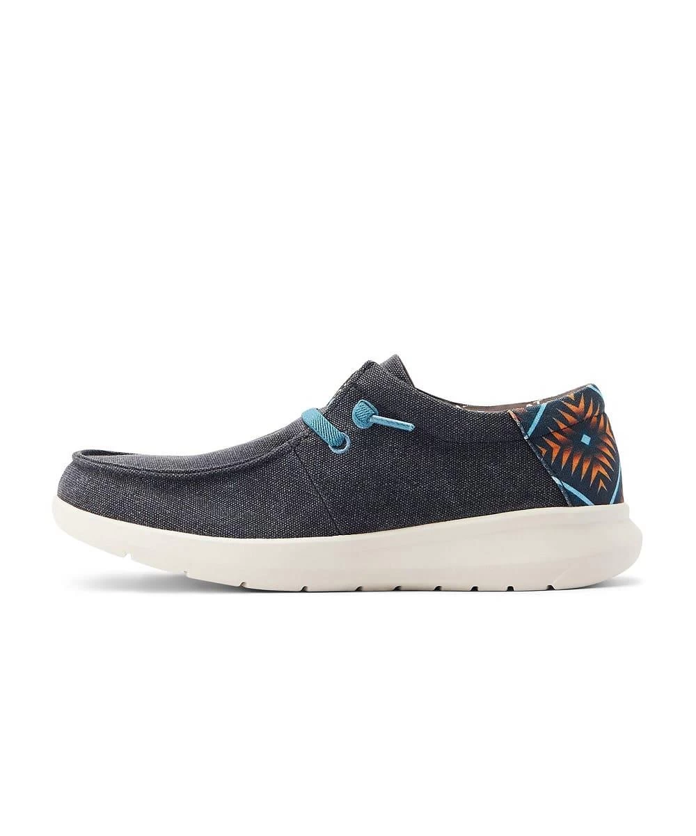 Fabric Upper And Lining; 3″ Upper Height; Open Cell Cushioning Insole; Lightweight And Flexible FLX Foam Sole; Contrast Heel Design; Moc Toe; Color: Charcoal Blue; Style #10044586