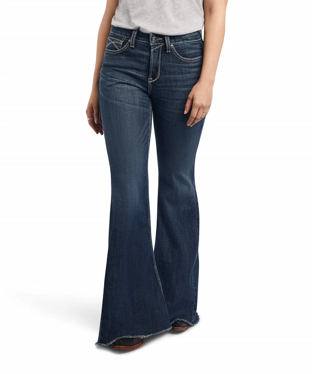 95% Cotton/4% Elasterell-P/1% Lycra Spandex; 9.75 Oz. Stretch Denim; High Rise; Dark Wash; Whiskering; Fading; Five Pocket Styling; Slim Through Hip And Thigh; Waistband That Won’t Gap; Seat That Won’t Sag; Seamed And Stitched Fashion Back Pockets; Extended Flare Leg; Color: Arkansas; Style #10041113