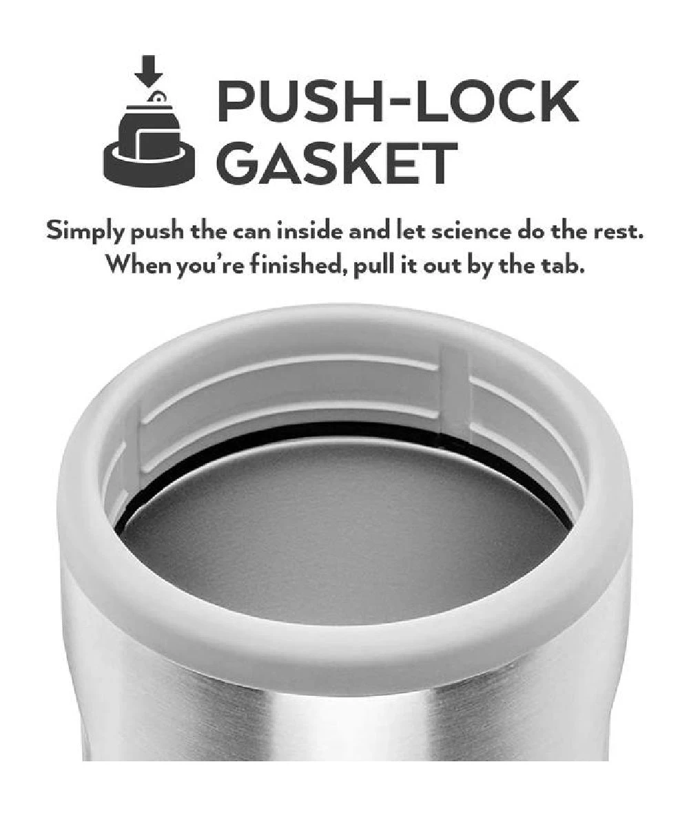 Triple Insulated Stainless Steel; Color: Aqua; Can-Cooler That Doubles As A 12 Oz Tumbler; Includes Splash Proof Lid; Push-Lock Technology Makes Inserting And Removing Your Can A Breeze; Non-Slip Base; Coors Light Gasket Adapter Allows You To Use With All Your Favorite Brews; Fits Most Standard 12 Oz Cans; 4.75″ Height; 9.42″ Circumference; Style #HD12T