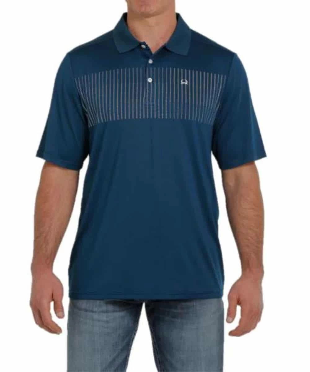 Poly-Spandex Construction; Color: Blue; Three Button Placket; White Buttons; Open Collar; White Dotted Screen Print Down Chest; Left Chest White Logo Heat Transfer; Short Sleeve; Moisture Wicking Fabric; Lightweight; Style #MTK1834001