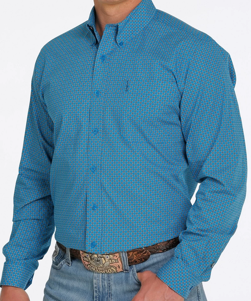 100% Cotton Plain Weave; Color: Blue/Navy Printed Cotton; Single Open Pocket On Left Chest; Embroidered Logo; Blue Buttons; Long Sleeve; Style #MTW1347052