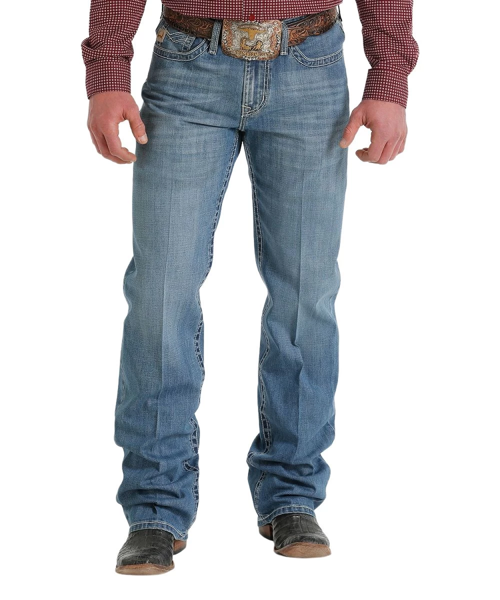 10.9 Oz. Performance Stretch Denim; Relaxed Fit; Mid Rise; Zip Fly With Button Closure; Whiskers; Hand Sanding; Five Pocket Styling; Fashion Stitch Designed Back Pockets; Bootcut Jean; Medium Stonewash; Style #MB56137001