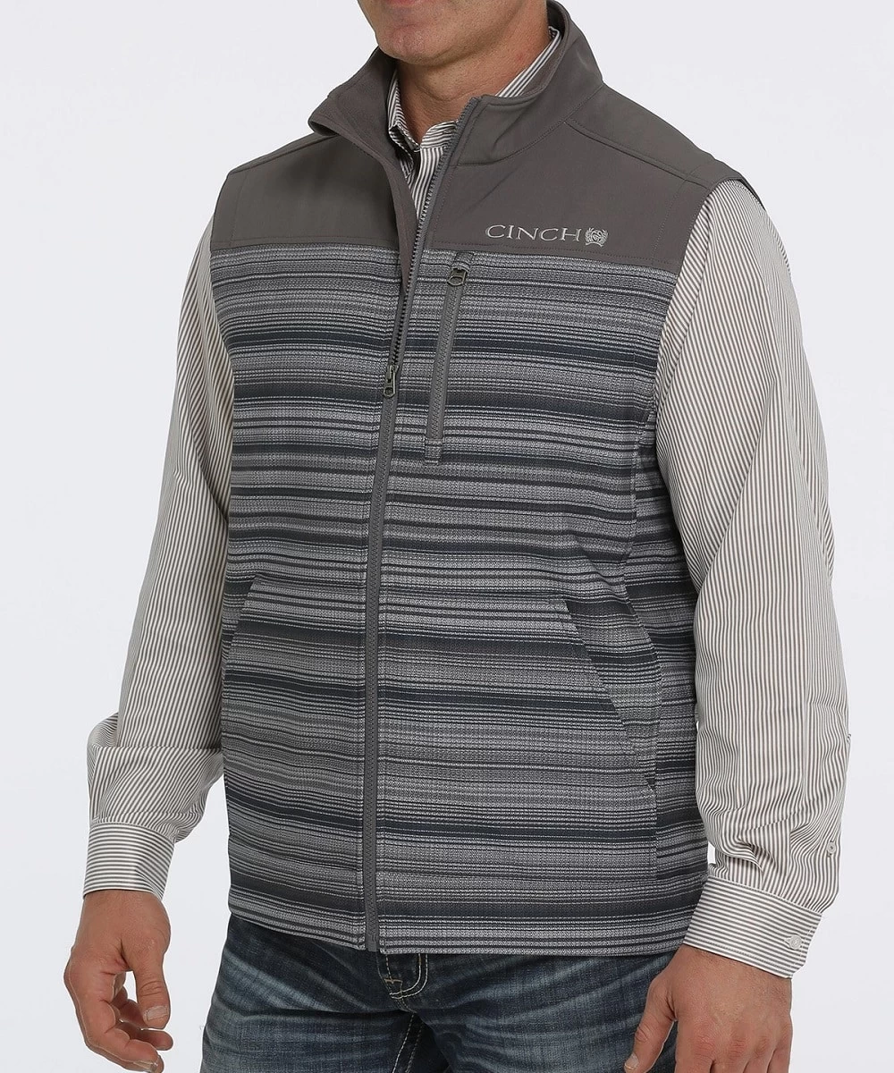 Poly-Spandex Bonded Vest; Color: Gray; Color Blocked; Logo Embroidery On Left Chest; Two Open Hand Pockets; One Vertical Zippered Left Chest Pocket; Durable Water Resistant Finish; Style #MWV1563002