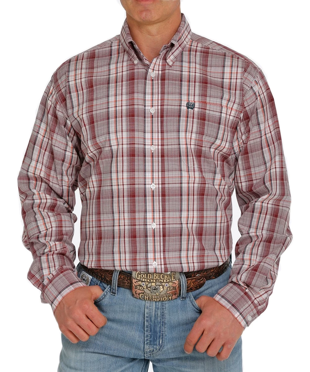 Cotton/Spandex Plain Weave; Long Sleeve; Button Down Collar; Button Closures; Button Front And Cuffs; Single Open Chest Pocket With Logo Embroidery; Color: Teal, Maroon And Orange Plaid; Style #MTW1105391