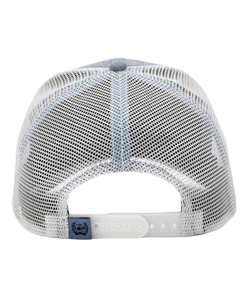 Cotton Twill Front; Curved Bill; Embroidered Logo Patch; White Mesh Back; One Size Fits Most; Snapback Closure; Color: Light Blue/White; Style #MCC0511008
