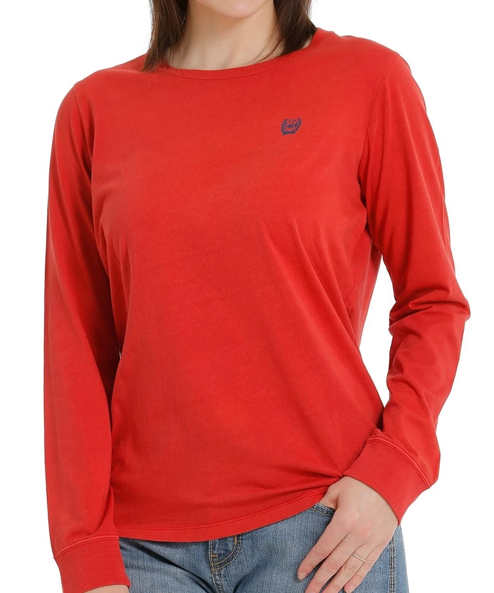Soft Hand Cotton Jersey Tee; Long Sleeve; Front And Back Screen Print; Blue Contrast Logo Design; Color: Red; Style #MSK7895005
