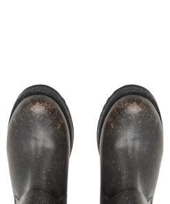5 3/4″ Shaft; Full Grain Brush Off Leather; Leather Lined; Goodyear Welt Construction; Antique Silver Hardware; 1″ Heel; Round Toe; Leather And Rubber Outsole; Color: Distressed Black; Style #3470654-BLK
