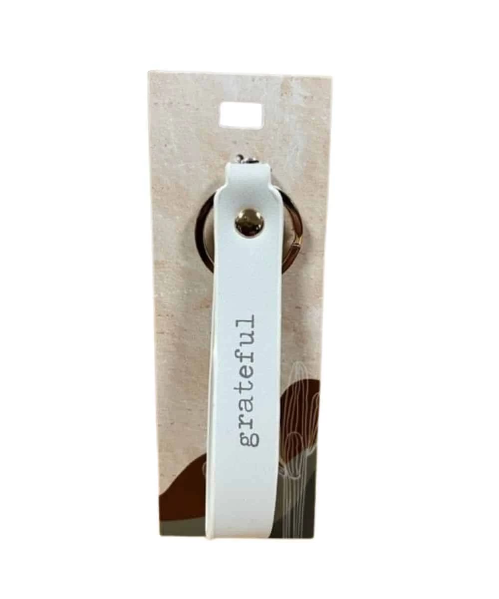 Fabric Keychains; Gold Key Ring; Measures Approximately 4″ L X .75″ W; Color Options: Olive ‘blessed’, Sage ‘free spirit’, Brown ‘wild’, Beige ‘loved’, White ‘grateful’, Or Black ‘brave’; Please Note Your Order With Your Color Preference And We Will Notify You If We Do Not Have Your Preferred Color; Style #718651