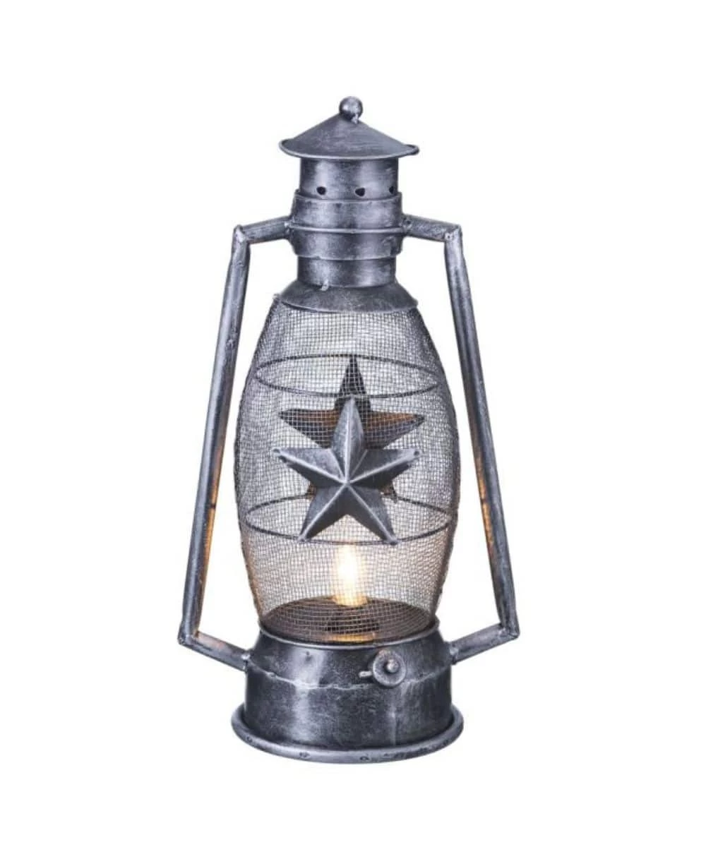 Metal; Antique Brushed Finish; Star Design; Includes Small Lightbulb; Plugs Into The Wall; 14.25″ x 8″; Style #87-93762-141-14
