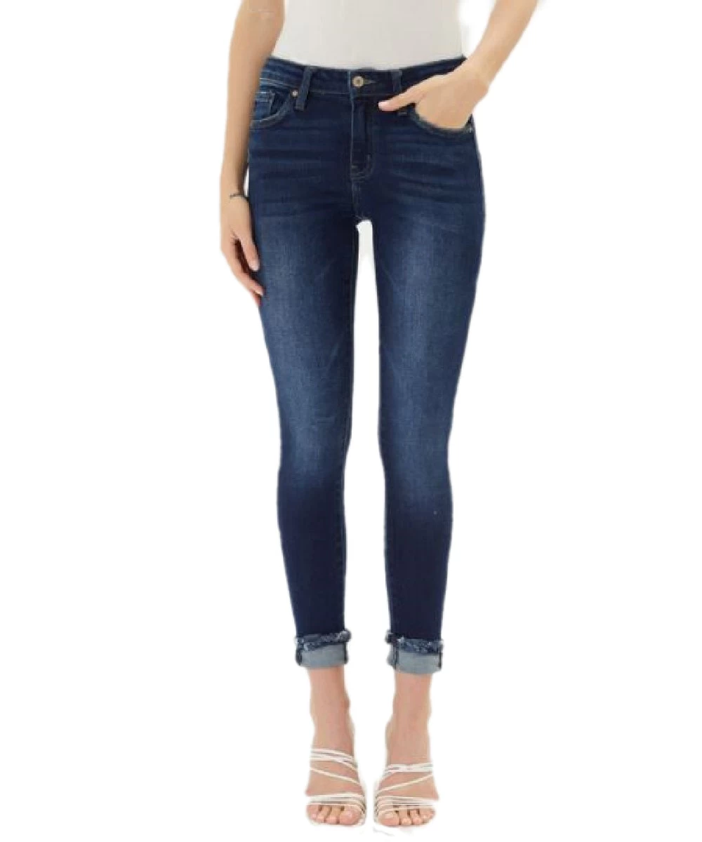 94.9% Cotton/3.8% Polyester/1.3% Spandex; Mid Rise; 9″ Rise; Five Pocket Styling; Hem Detail; Skinny Leg; Style #KC7321D