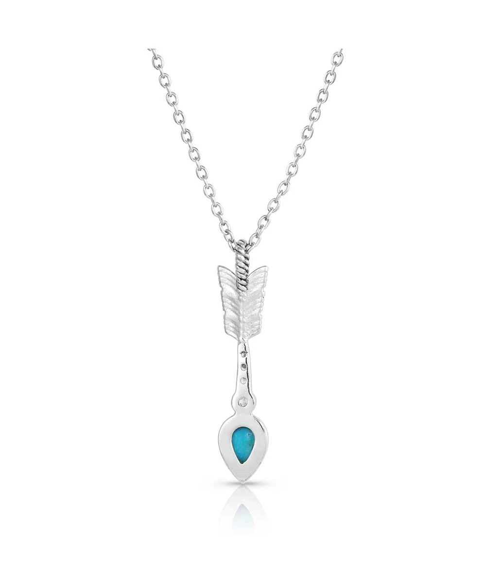 Rhodium Over Sterling Silver; Teardrop Shaped Turquoise Stone On Detailed Arrow; Accented With Sparkling Clear Cubic Zirconia Crystals; 18″ Silver Tone Chain; Style #KTNC5482
