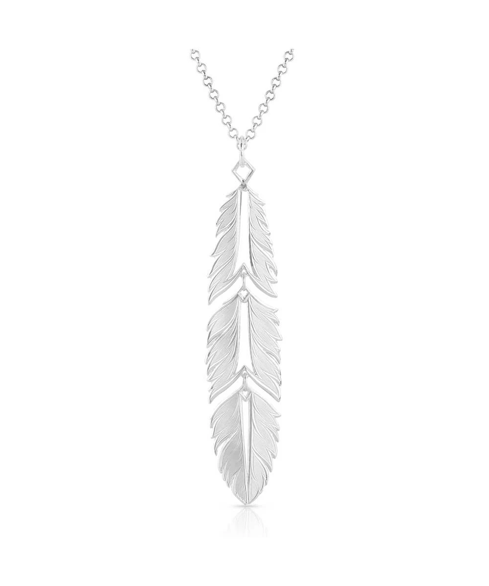 99.99% Fine Silver Over Brass Base; Feather Shaped Pendant; Feather Is Split Into Three Different Sections Offering Movement In The Design; Open Cut Vein Of Feather Provides Delicacy; 19″ Silver Tone Chain; Montana Armor To Prevent Tarnish; Style #AMNC5459