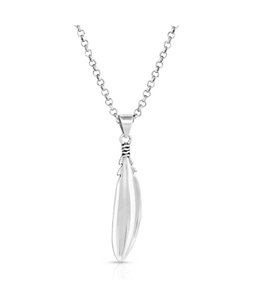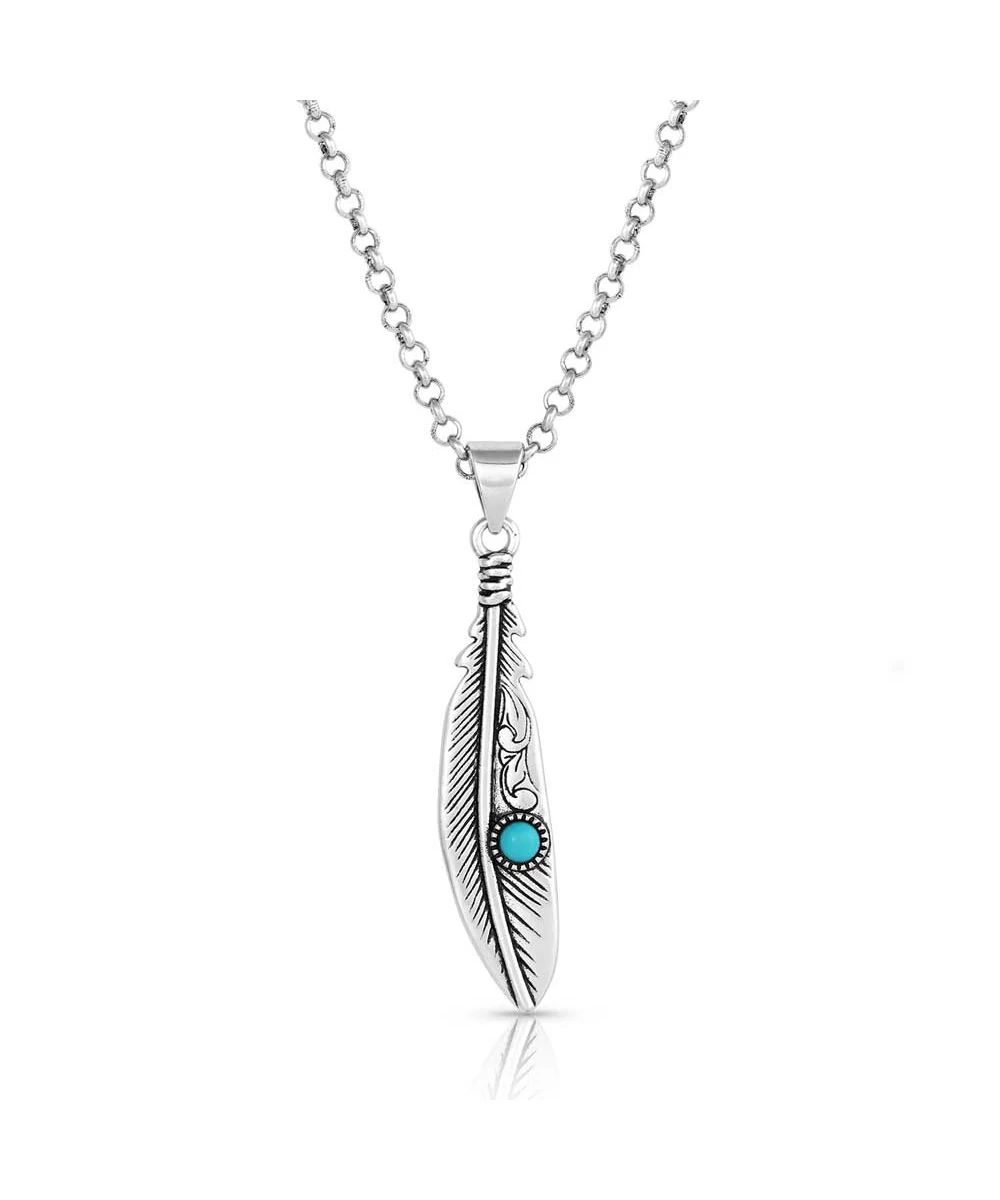 Silver Over Brass; Synthetic Turquoise; Intricately Detailed Feather With Pop Of Turquoise Paint; 18″ Silver Tone Chain; Style #NC5486
