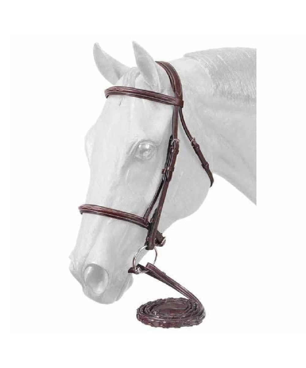 English Leather; Features Raised Padded Caveson And Browband With White Fancy Stitching To Add Stunning Detail; Padded Shaped Crown For Increased Comfort; Hook And Stud Bit And Rein Ends; Complete With Wide Laced Reins In Standard 54″ Length; Less Bit; Style #22-6558-7-0