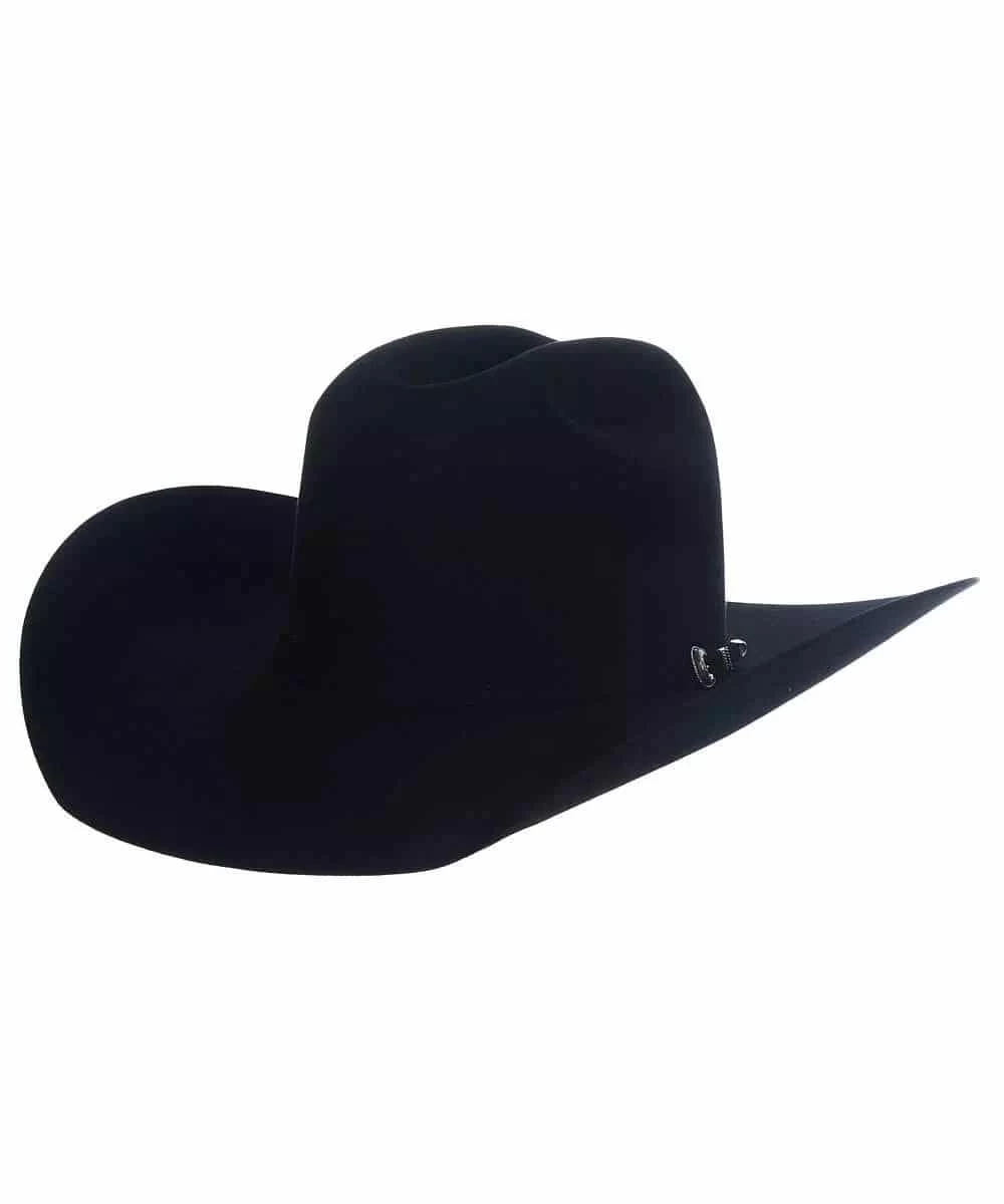 30X; 4 1/4″ Brim; Cattleman Crown; Self Hat Band With Three Piece Antiqued Silver Tone Buckle Set; Leather Sweat Band; Color: Black; Style #30XTOPHAND 41/4