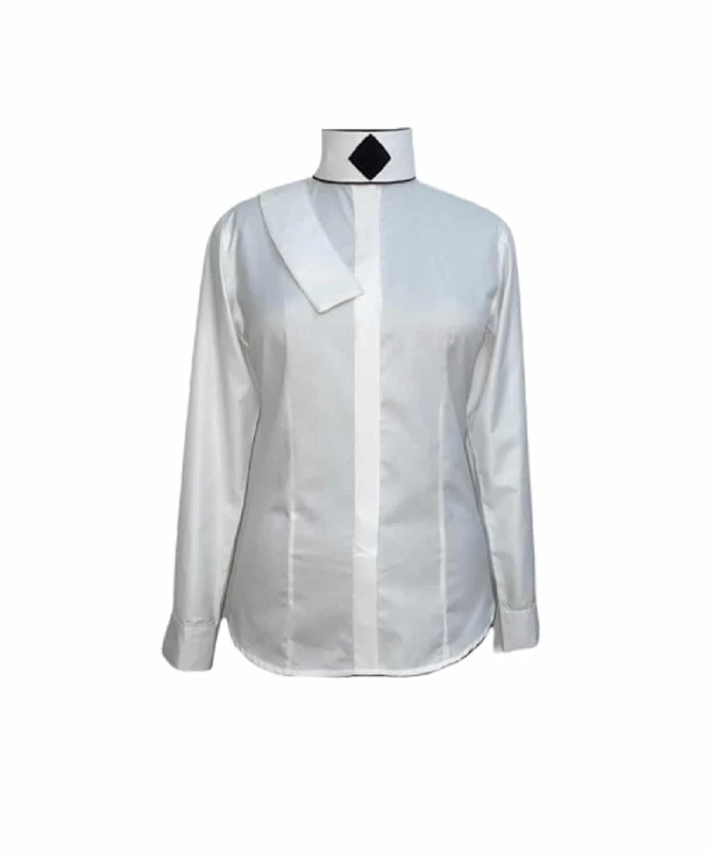 Cotton-Poly Blend Construction; Easy Care, Breathable, Moisture Wicking Fabric; Covered Button Down Placket; Adjustable Velcro Collar; Comes With 2 Embroidered Collars; Color: White; Style #68566