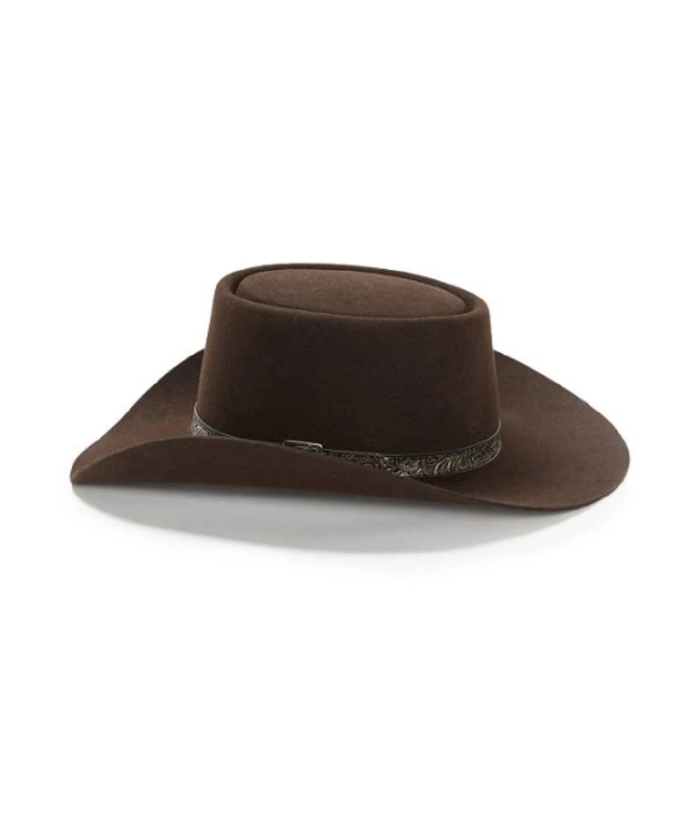 4X Wool Felt; 3 1/2″ Brim; 4″ Gambler Crown; Tooled Leather Hatband; Style #SBRVGR-4634