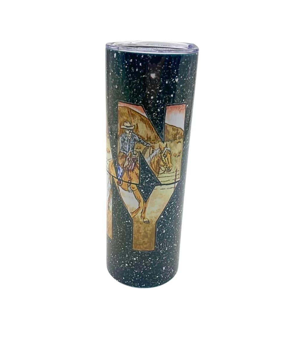 20 Oz.; Keeps Drink Hot Or Cold; Black Glitter Background; Tumbler Reads: Ranchy With Brown Western Background Print; Includes Straw And Lid; Style #RANCHY TUMBLER