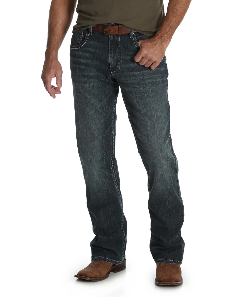 99% Cotton/1% Spandex 11.5 Oz Stretch Denim; Sits Lower On Waist; Slim Seat, Thigh And Knee; Fading; Whiskering; 5 Pocket Styling; Brown And White Back Pocket Stitching; Boot Cut; Color: Kaycee Blue; Style #42MWXGG