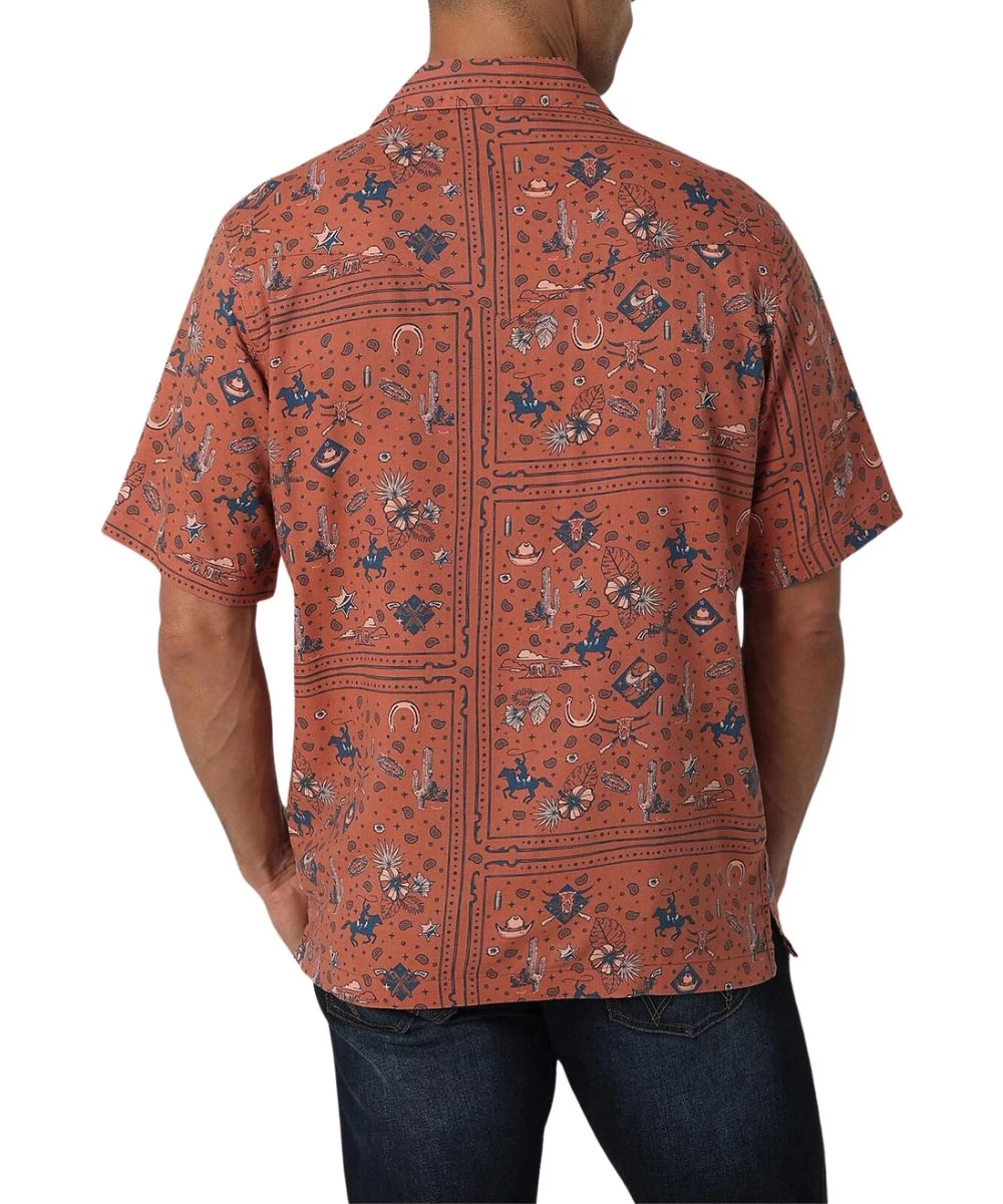 55% Cotton/45% Rayon; Classic Fit; Short Sleeve; Spread Collar; Snap Front Placket; Dual Single Point Snap Flap Chest Pockets; Single Point Back Yoke; Straight Bottom Hem; Bold Tropical Print With Traces Of Western Roots; Color: Rodeo Red; Style #112326329