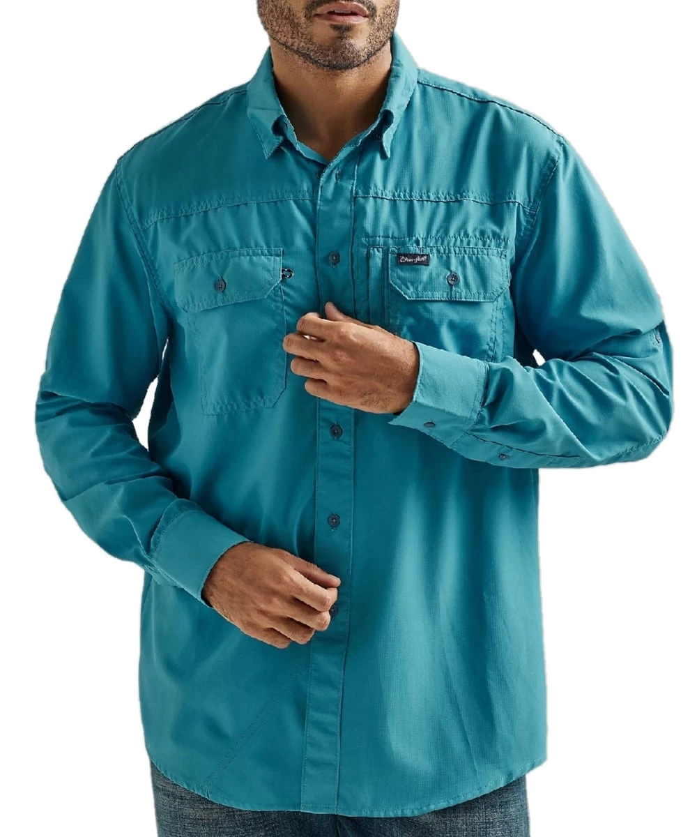 100% Polyester; Long Sleeve With Roll Tab; Hidden Button Down Collar; Classic Fit; Button Down Placket And Cuffs; Two Button Flap Chest Pockets; Pencil Slot And Secure Zip Napoleon Pocket; Eyeglass Cleaner At Hem; Western Back Yoke With Logo Embroidery; Back Ventilation; UV Protection; Moisture-Wicking Finish; Color: Faience; Style #112323773