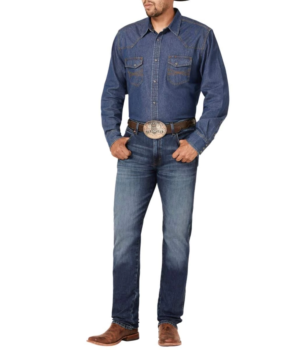 98% Cotton/2% Elastane; Slim Fit; Zip Fly With Button Closure; Whiskers; Hand Sanding; Fading; Five Pocket Styling; Five Pocket Styling; Fashion Stitch Back Pockets; Straight Leg Jean; Color: Medium Dark Wash; Style #112314610