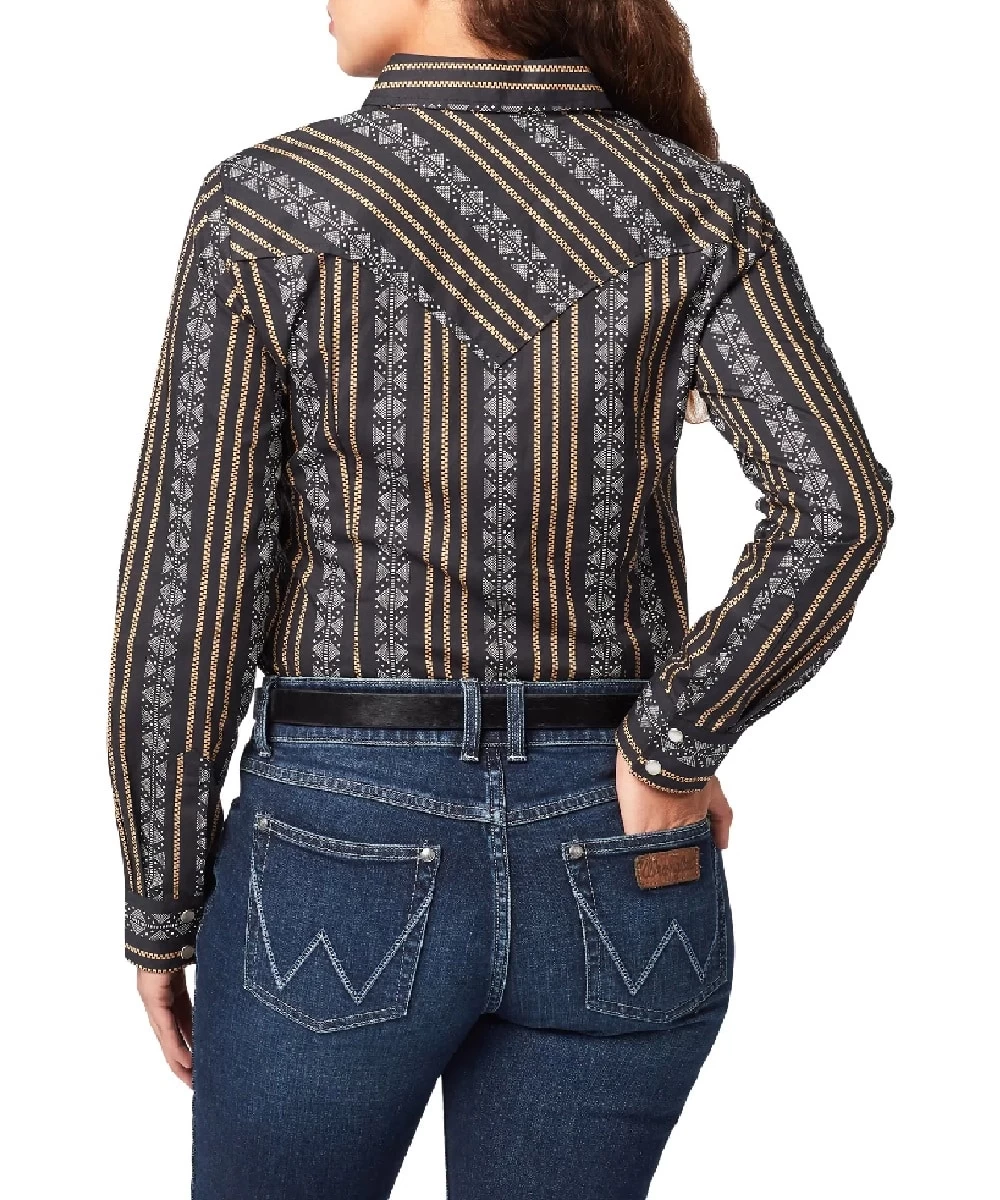 100% Cotton; Spread Collar; Long Sleeve; Snap Front Closure; Western Single Point Front Yokes; Two Single Point Snap Flap Chest Pockets; One Western Single Point Yoke On Back; Double Snap Cuffs; Color: Black With Yellow And White Geo Print; Style #112321392